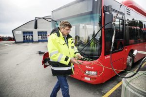 På Grorud ligger en av fyllestasjonene for bussene som kjører på biogass. Magne Elvik er driftssjef i Nobina Norge, som drifter stasjonen. – Når en buss kommer inn på anlegget, tar det under 20 minutter til den er fylt med biogass, forteller han.
