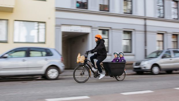 Alf Waage rekker knapt å få av presenningen før tvillingene Idunn og Anton vil ta plass i «familiebilen» – en el-lastesykkel med kasse bak, der de to får plass på hvert sitt sete. Her har de fri sikt til alt som skjer langs veien til barnehagen. Snekringen på byggeplassen borti gata, det tørre løvet som vinden virvler opp til dans, brannbilen på vei til en utløst alarm. Selv har mamma Hilde Sternang en «long tail» el-lastesykkel med plass til begge barna på et ekstra langt bagasjebrett.