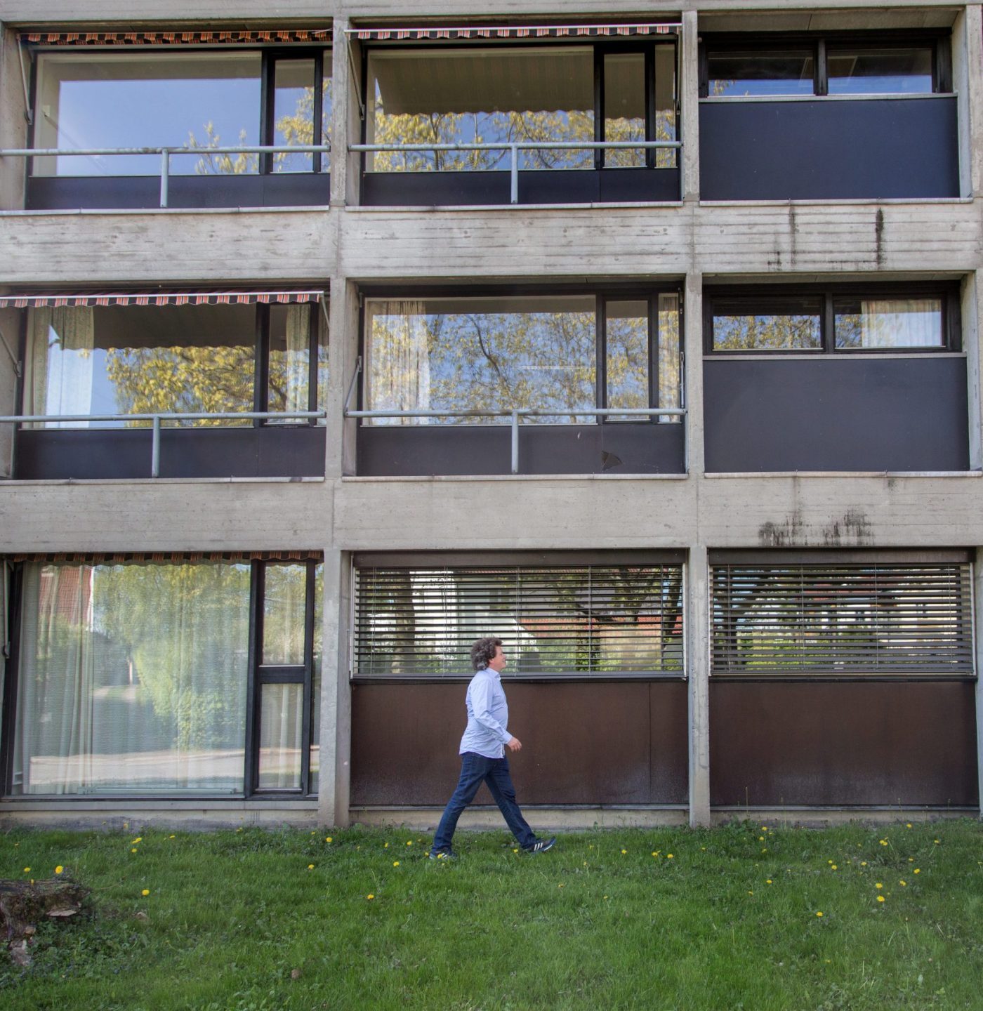 Han står foran det gamle Tåsenhjemmet. I 2020 er det et helt annet bygg som står på denne tomta. Det nye Tåsenhjemmet skal bli det første sykehjemmet i Norge – kanskje verden – som går i pluss. Det vil si at det produserer mer energi enn det forbruker.