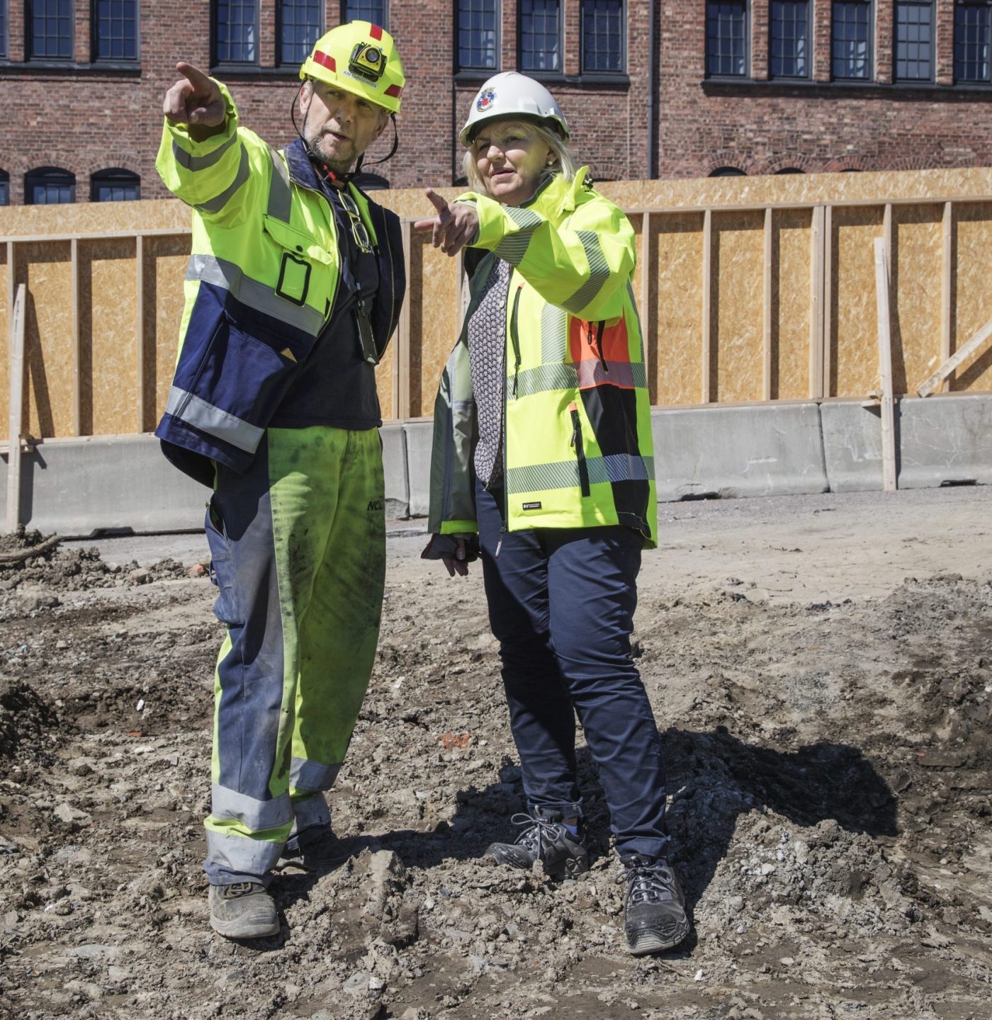 Formann Bjørn Løvseth i NCC og direktør Eli Grimsby i Kultur- og idrettsbygg Oslo KF opplever at entreprenørene er villige til å være med på et grønt løft på byggeplassene i Oslo.