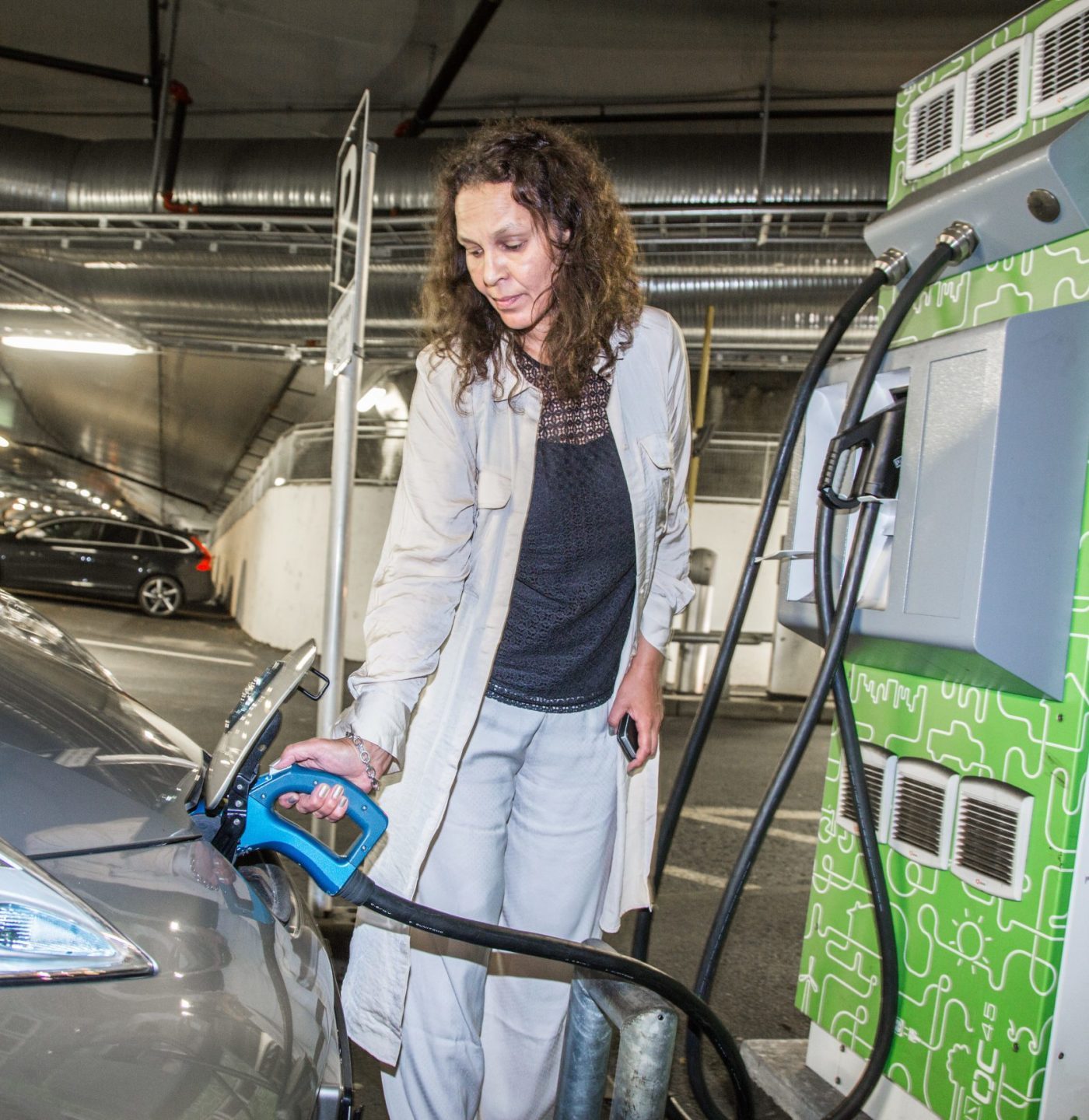 – Vi har også elbil, sier en liten nabojente som kommer forbi stolt, før hun forsvinner hoppende og sprettende, med flagrende fletter, inn i nabooppgangen.