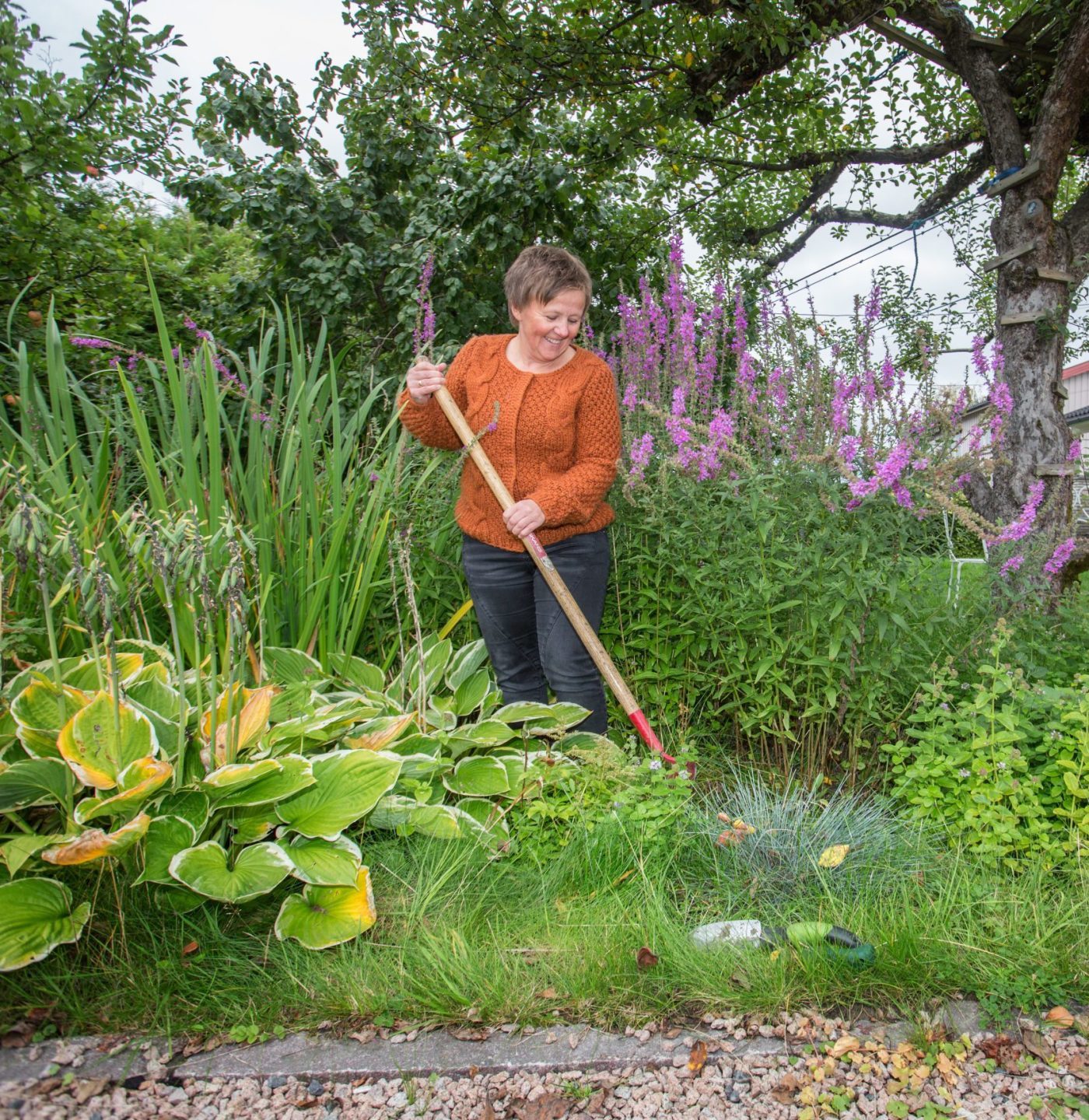 – ”Det er mye morsomt man kan gjøre med for mye vann i en hage”, sa Bent til meg. Da var jeg solgt, jeg som er så glad i planter og grønt, sier Sigfrid.