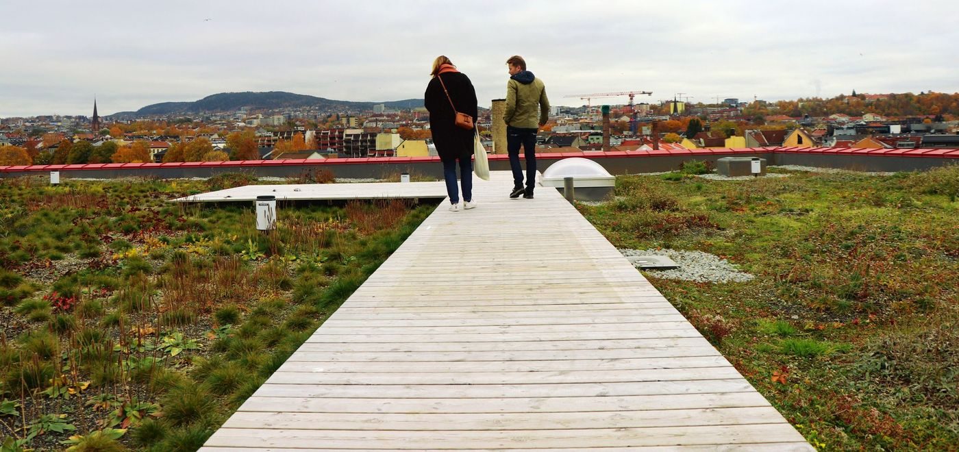 Gry Ellen Ringstad og Rune Skeie på et av Oslos mest innovative tak.