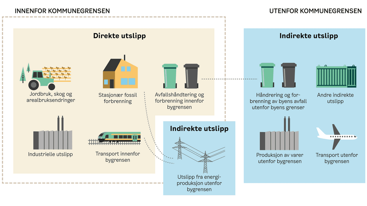 Målet gjelder de direkte utslippene – altså er de utslippene som fysisk skjer innenfor Oslos kommunes grenser. En fjerdedel av disse kommer fra private biler og nesten en fjerdedel kommer fra varebiler, lastebiler og busser. Resten av utslippene kommer hovedsakelig fra bygg- og anlegg og fra forbrenning av avfall på Oslos to forbrenningsanlegg. Når Oslo skal nå målet om å redusere utslippene med 95 prosent må alle disse utslippene bort.