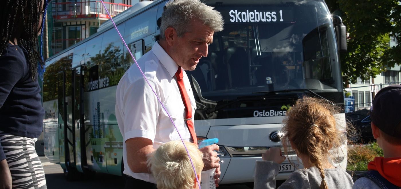 Den 6 år gamle gutten hopper opp når bussjåfør Frode Lillebø stiger ut av bussen. Ruseløkka skole er under ombygging og elever derfra skysses for tiden mellom Vollebekk skole og Ruseløkka. Skoledagen er over, og elbussen står og venter. Skoleelevene vet det kanskje ikke selv, men de er en del av et grønt skifte i tungtransporten i Oslo. Oslobuss er det første selskapet som kjører elbuss i Oslo utenom Ruters busstilbud.