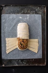 Høytid Steg for steg 3 Ta deretter de nederste og øverste remsene og brett de rundt enden for å dekke den