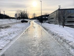Hyppige temperatursvingninger fører til islegging og hålke. Når det kommer varmegrader begynner hålken å smelte, men om det kommer minusgrader rett etterpå fryser det til is igjen. Da blir det glatt!