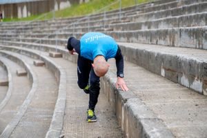 NESE MOT KNE: Denne øvelsen trener både ankel, kne og hofte, for ikke å glemme balansen! Gjør du det i en trapp kan du støtte deg til et trinn, så blir det enklere.