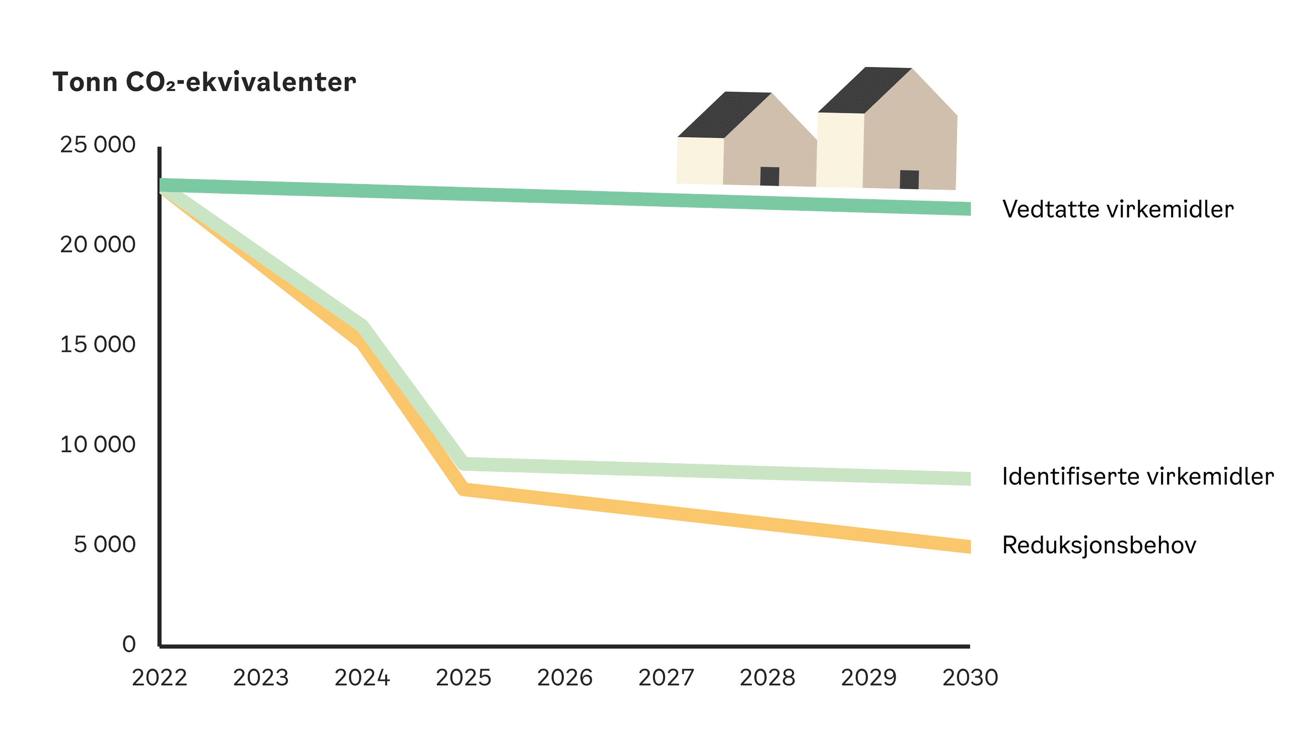 I årene fra 2023 til 2030 må utslippene reduseres med nesten 65 000 tonn CO2-ekv., utover utslippsreduksjonene fra karbonfangst på Klemetsrud, hvis man skal nå utslippsrammene. Denne årlige utslippsreduksjonen anses som oppnåelig i lys av utslippsreduksjonene i årene fra 2018 til 2019 og fra 2019 til 2020.
