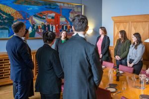 Byrådssekretæren ønsker velkommen til lunsjen etter signering.