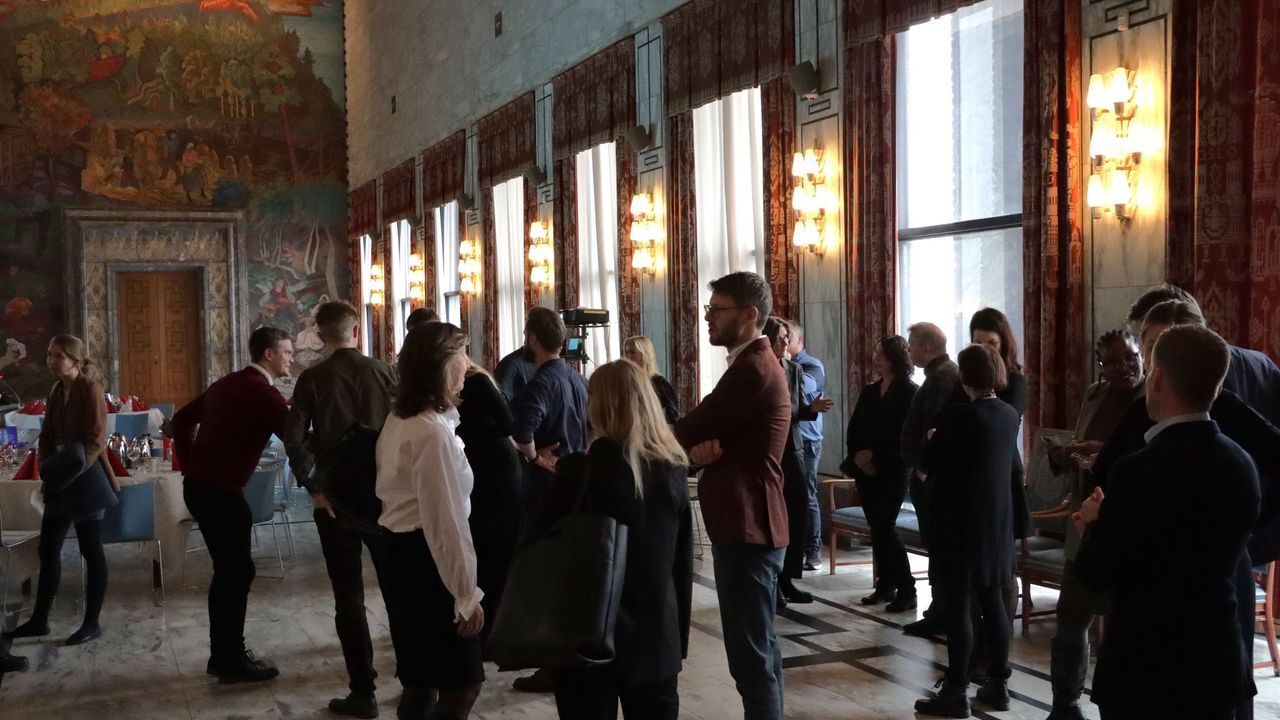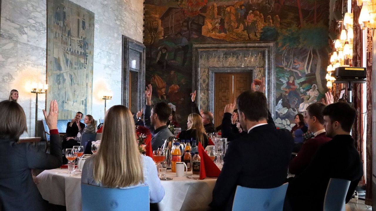 Byråd for miljø og samferdsel og leder av Næring for klima, Marit Vea, inviterte til julelunsj i Festgalleriet på Oslo rådhus. Gode samtaler, julemat og en grønn flytur med klimapilotene stod på agendaen.