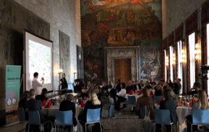 Klimapilotene Julie Malene Fusdahl og Hauk Are Fjeld holdt et todelt innlegg i løpet av lunsjen; om status klima og om klimakommunikasjon.