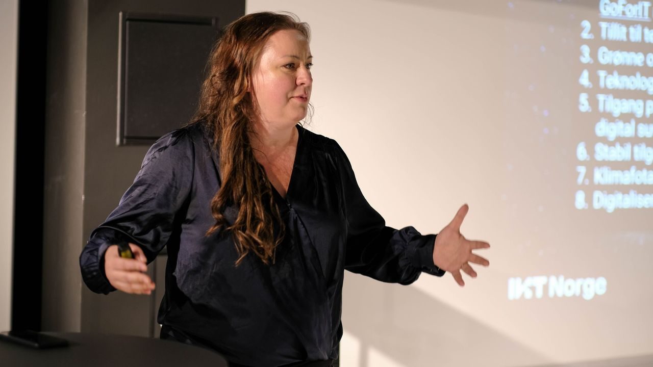 Det andre temaet for nettverksmøtet var digitaliseringens fotavtrykk. Teknologiutviklingen går nå i 3000 kilometer i timen. Hva innebærer det for bærekraft? Bærekraftsdirektør i IKT Norge Mali Hole Skogen åpnet med å dele erfaringene fra samarbeidsprosjektet GoforIT. Den største flaskehalsen de har identifisert er mangel på kompetanse: vi har for få teknologer. Spesielt mangler vi teknologer med kompetanse på bærekraft, sirkulærøkonomi og grønn koding. Dette gjelder særlig i de små og mellomstore bedriftene som skal drive hele underskogen av teknologier i Norge.