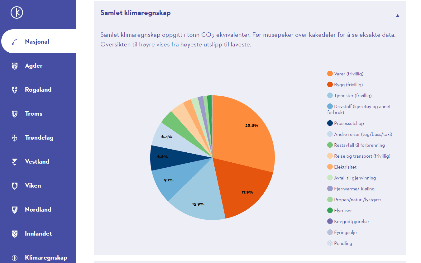 - Virksomheten fører utslippsregnskap og har kvantifiserte mål for utslippsreduksjon