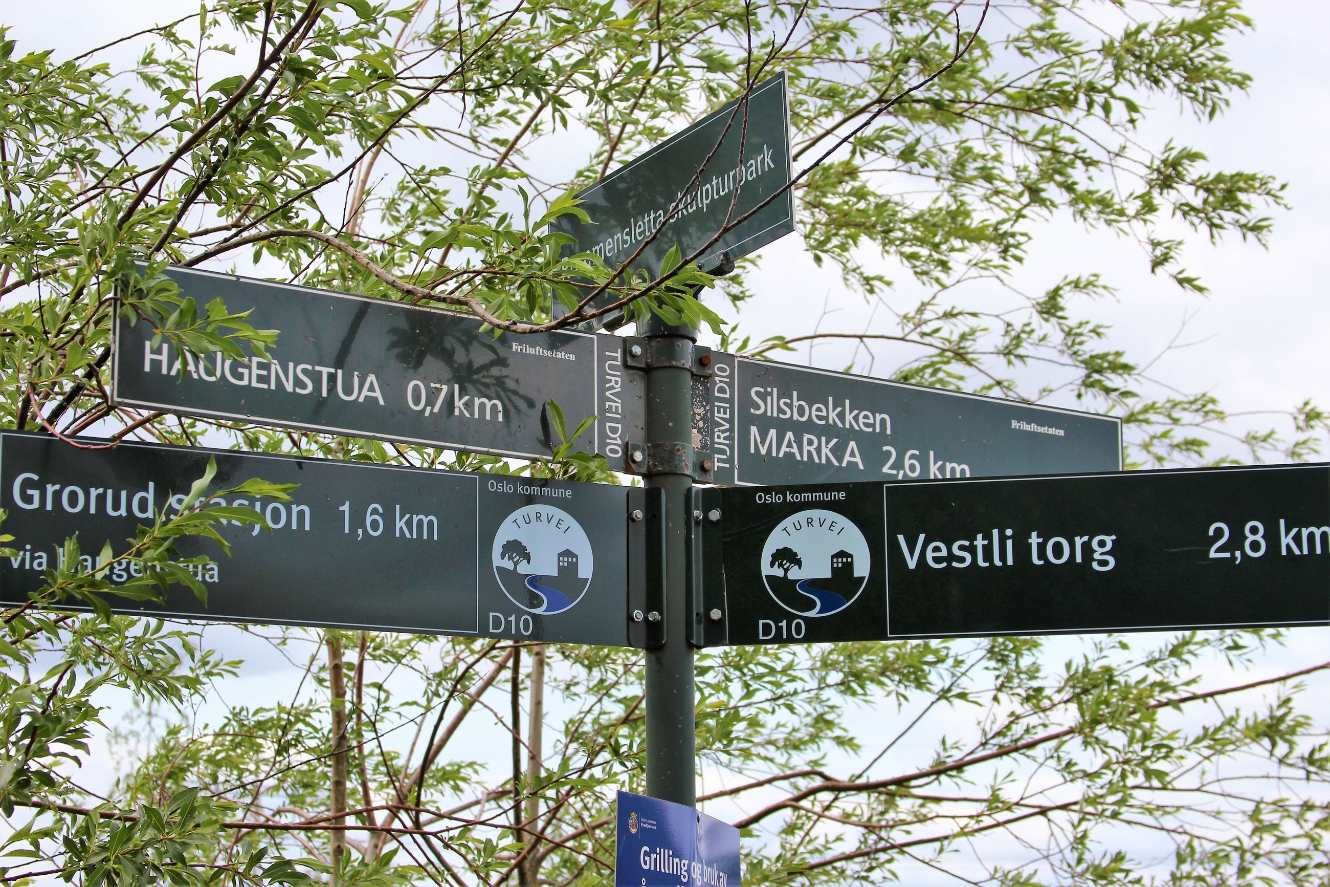 ROMMENSLETTA skulpturpark skilt (2) Et besøk i Rommensletta skulpturpark kan kombineres med en friluftstur i Groruddalen.
