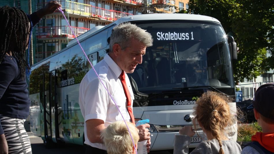 Miroslav Ducat sitter bak rattet i en av de nye el-leddbussene.