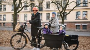 Denne familien bruker elsykler for å frakte både mat og barn