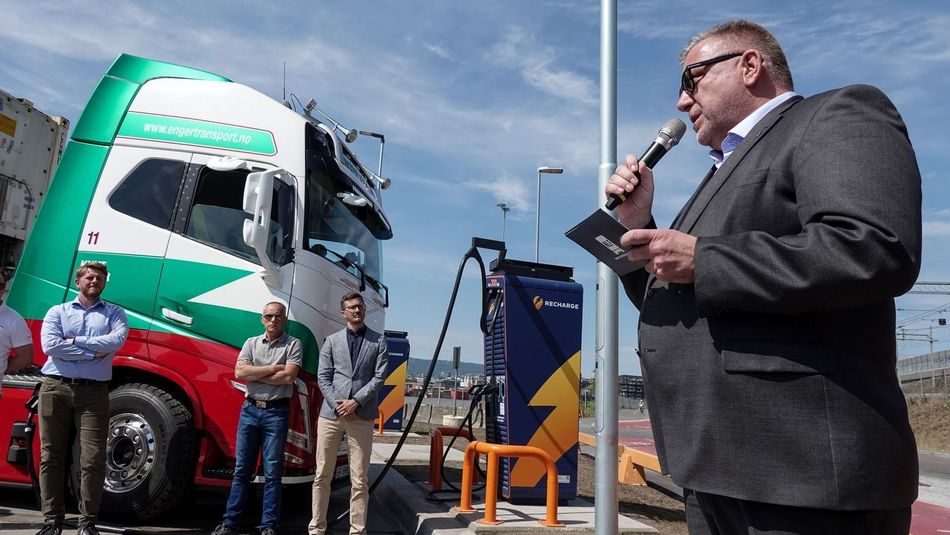 Her ligger Norges største offentlige ladestasjon for tungtransport